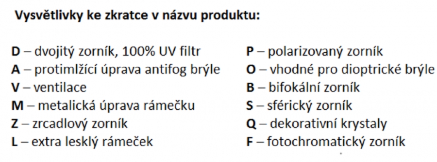 Vysvětlivky ke zkratce v názvu produktu: